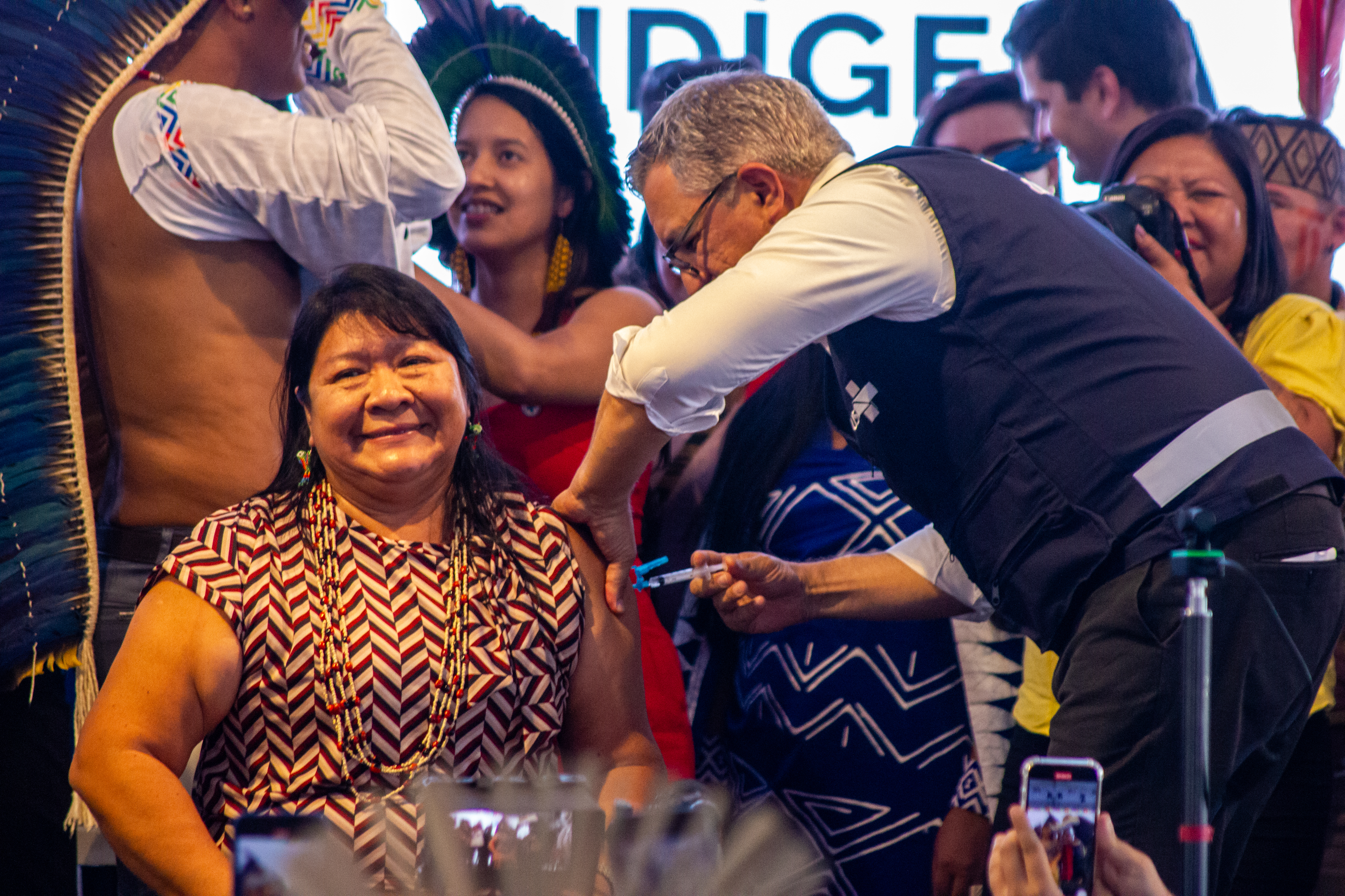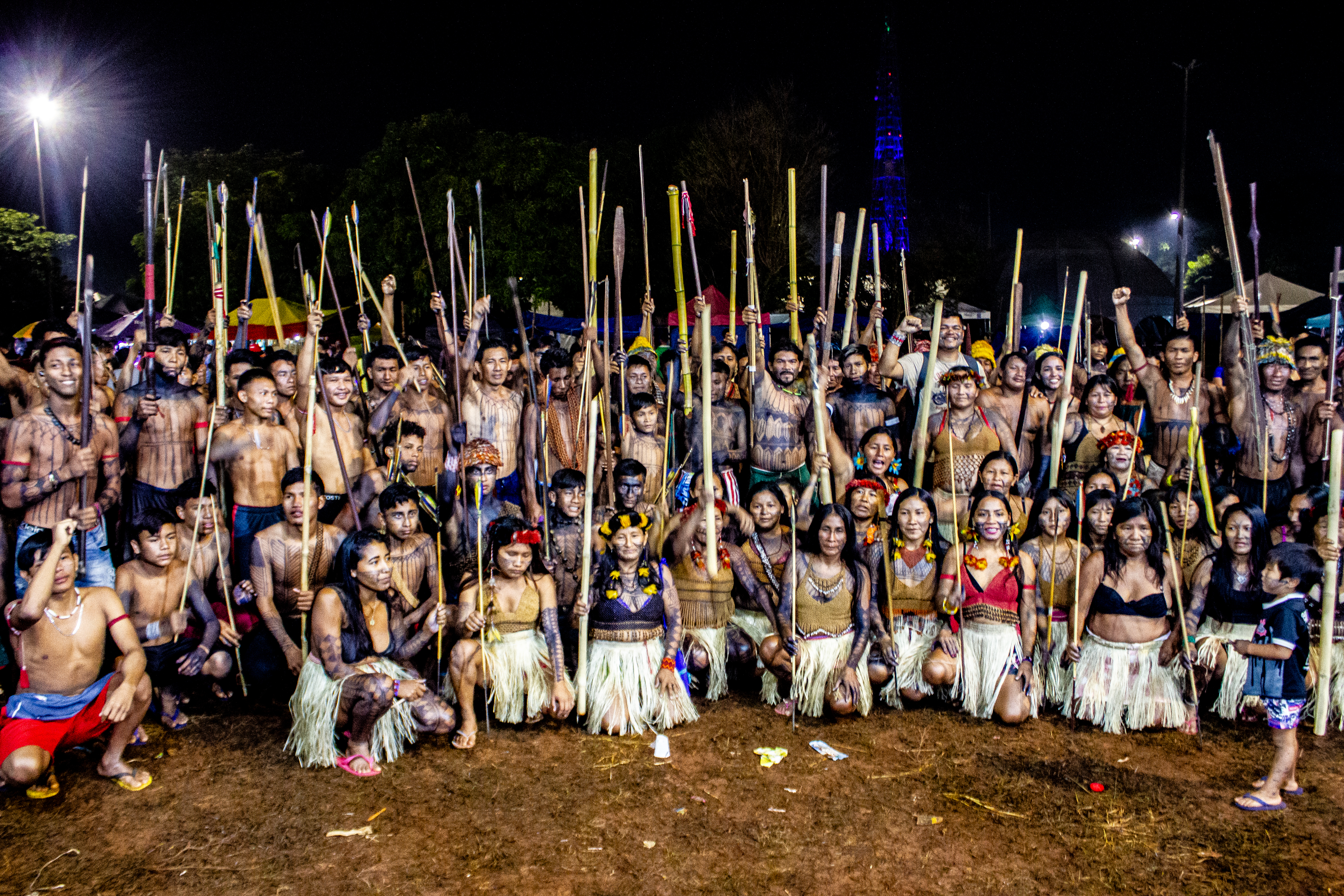 “Os brancos só pensam em fazer coisas ruins, que nos prejudicam, que prejudicam a natureza, nossa vida. Eu me chamo Raoni. Eu não aceito os garimpeiros, o desmatamento. Não aceito a destruição da natureza”, disse o cacique Raoni Metuktire, líder do povo Kayapó, durante o acampamento.