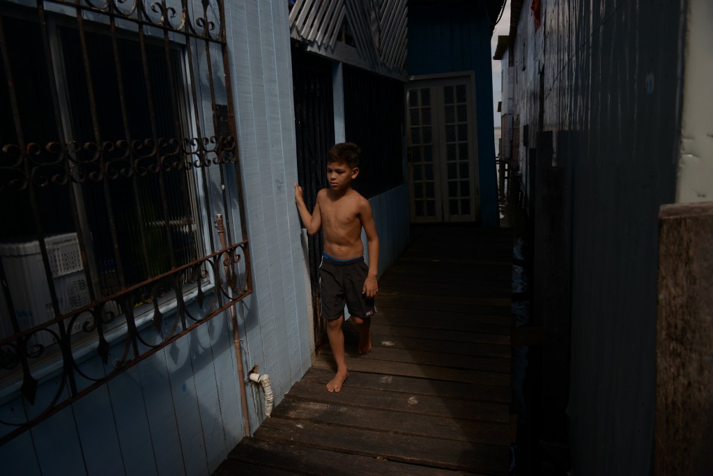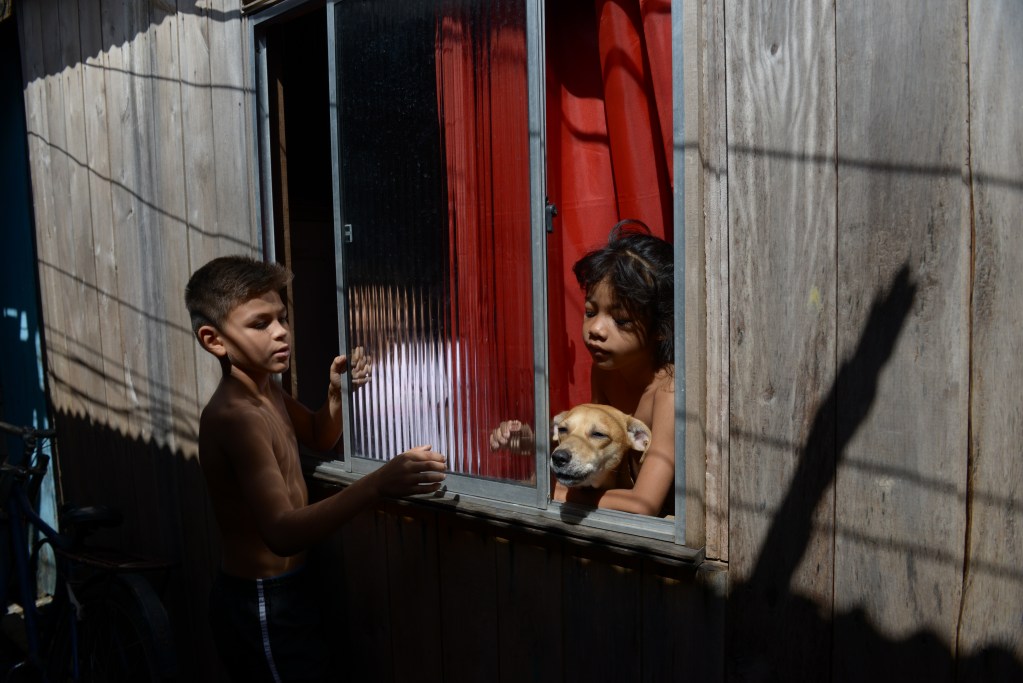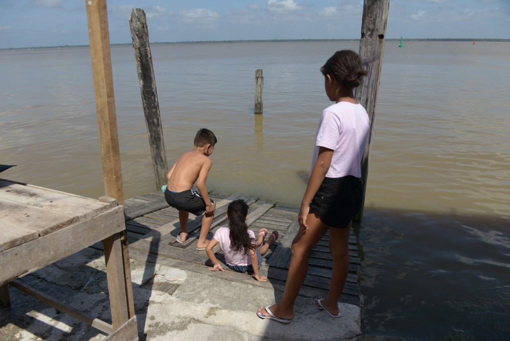 Imagem de abertura: Gisele Mendes e Cleia Carmo conversam entre as palafitas da Vila da Barca. Foto: Luis Ushirobira/InfoAmazonia