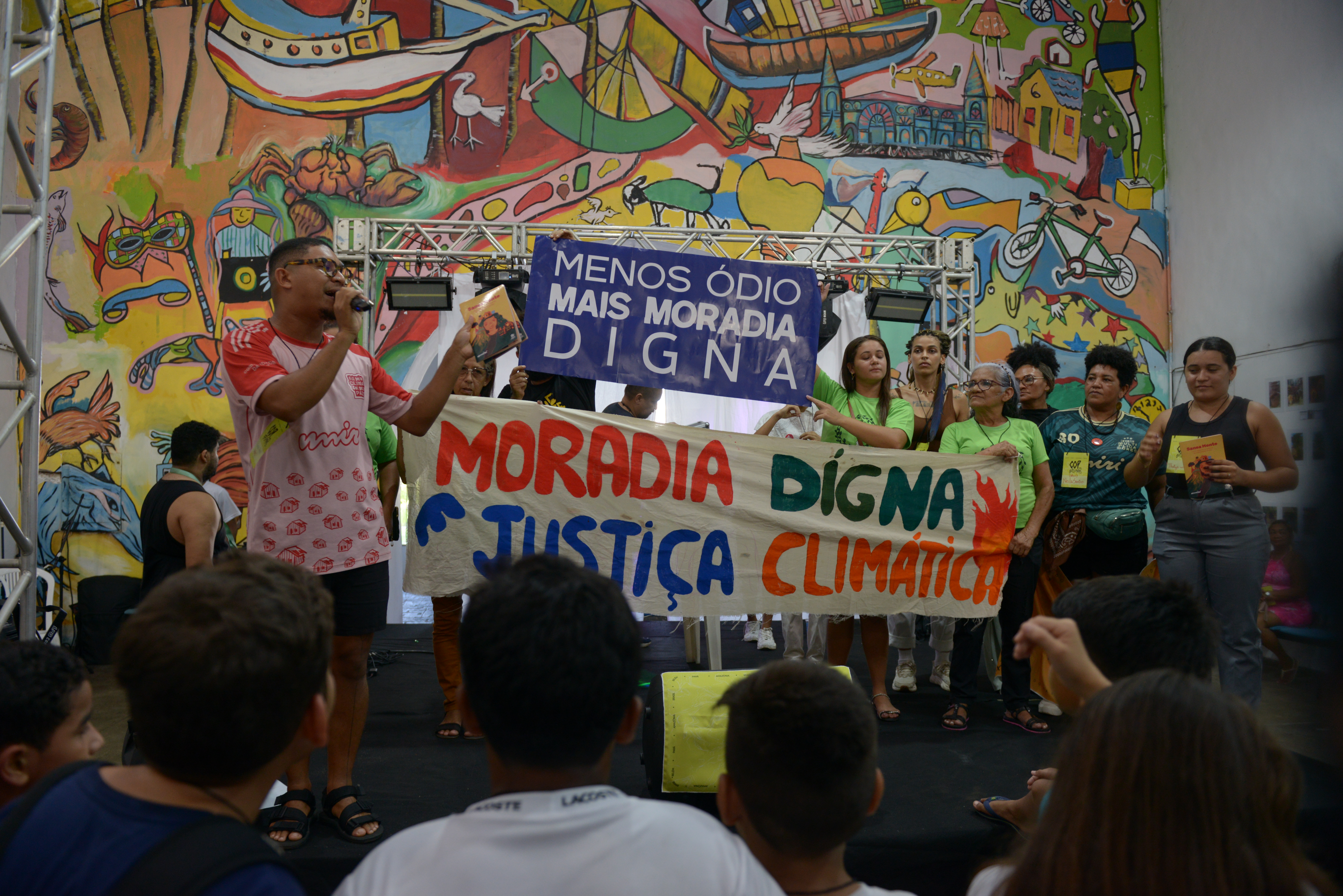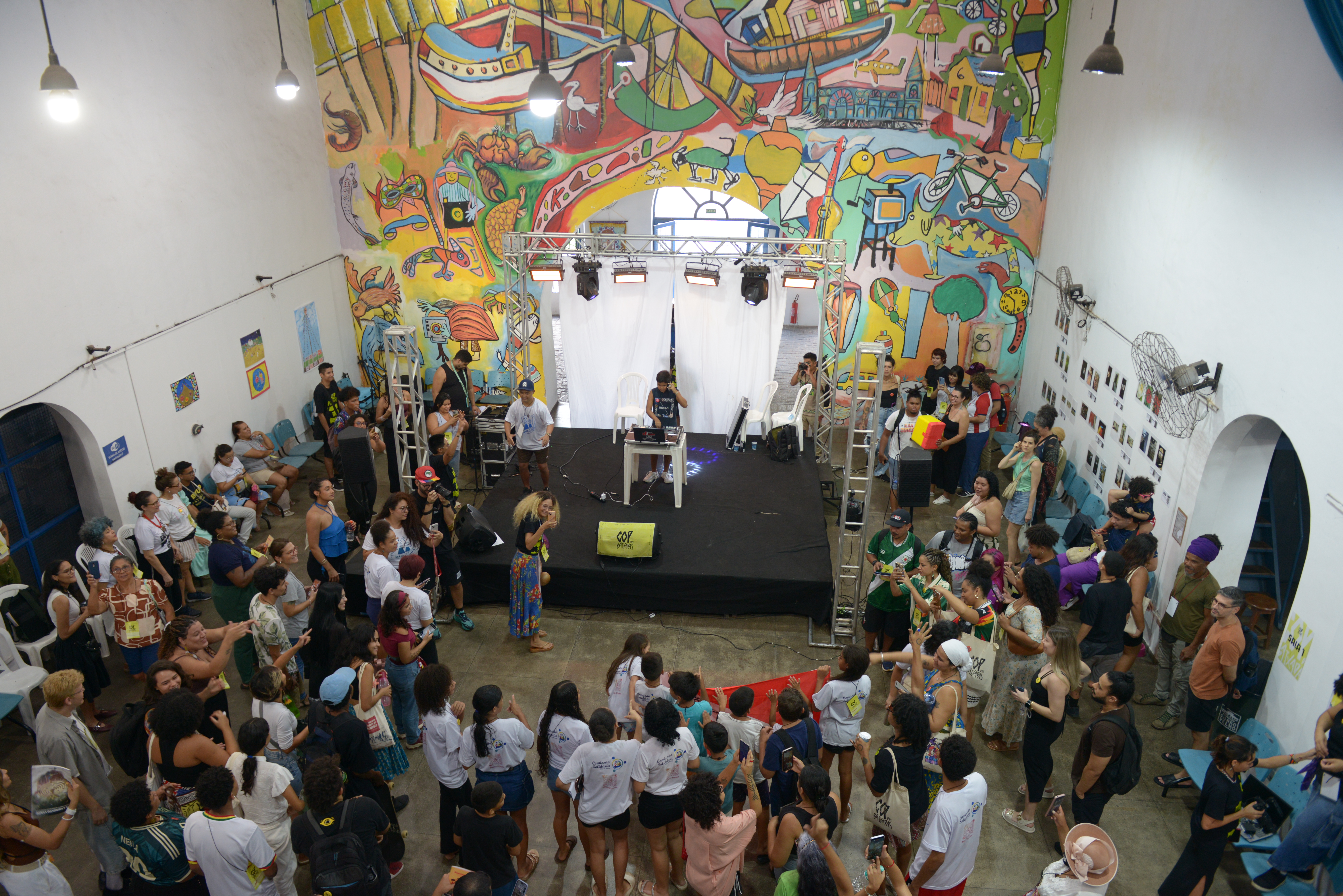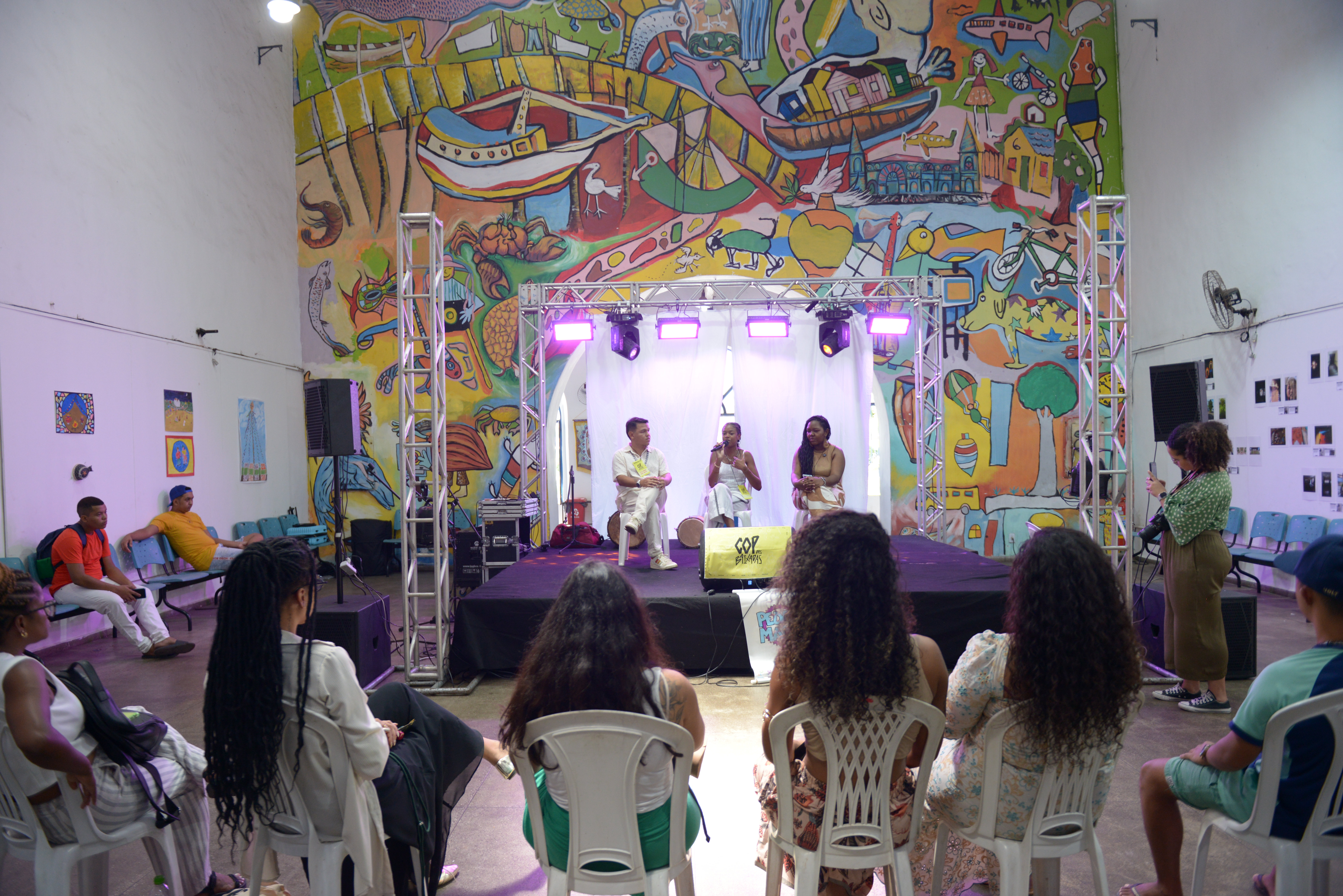 Nesta edição, a COP das Baixadas aconteceu no Curro Velho, complexo cultural e educacional gerido pelo estado do Pará, que fica na Vila da Barca. O casarão histórico, que antes abrigava o matadouro municipal, hoje funciona como um núcleo de oficinas de arte, ofício, e capacitação para jovens e adultos, incluindo aulas de música, teatro e dança. Todas as discussões sobre justiça climática, gênero, ancestralidade, raça, mobilidade urbana e limpeza dos rios foram intercaladas com apresentações de música, teatro, cinema e fotografia.
