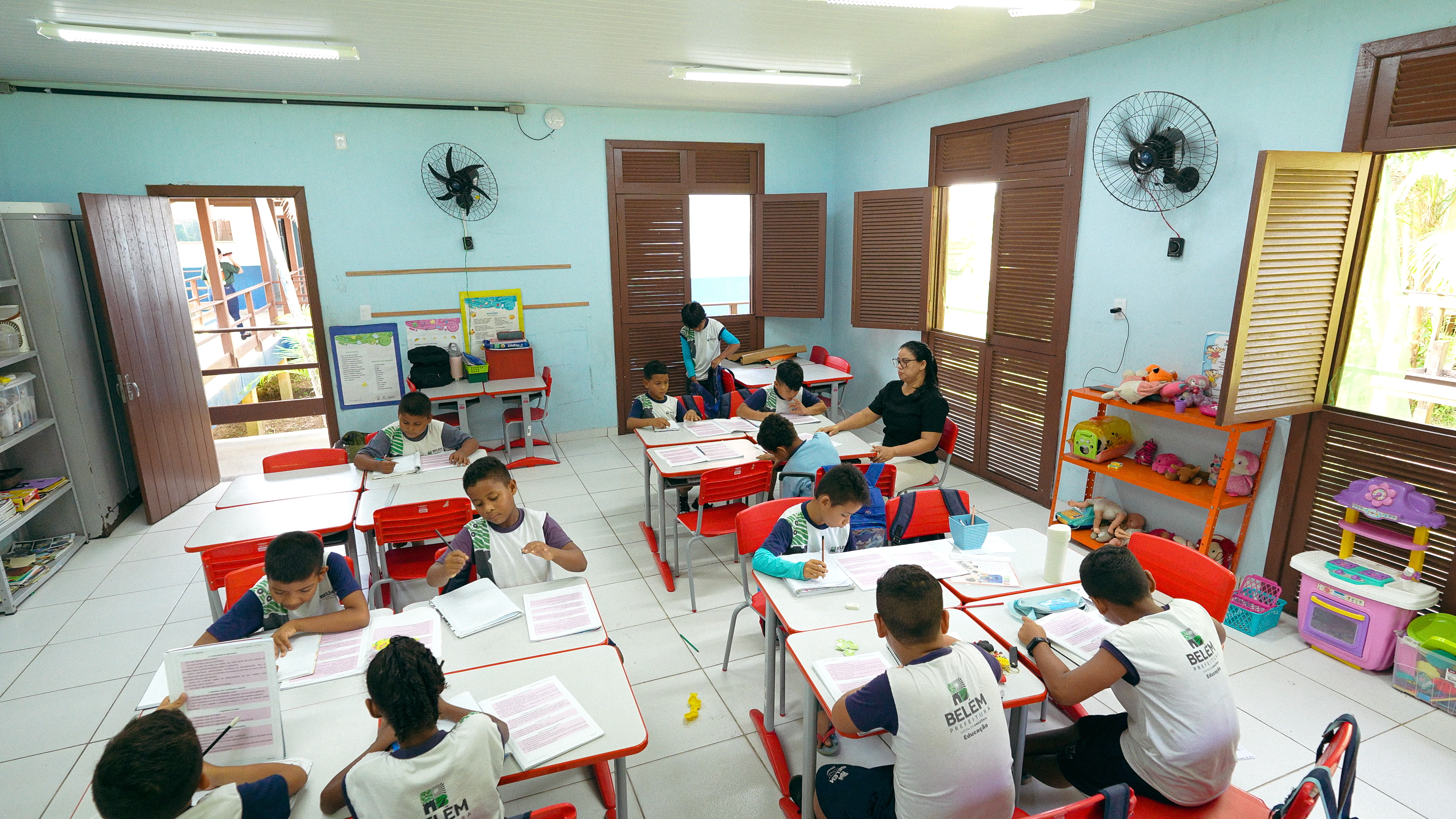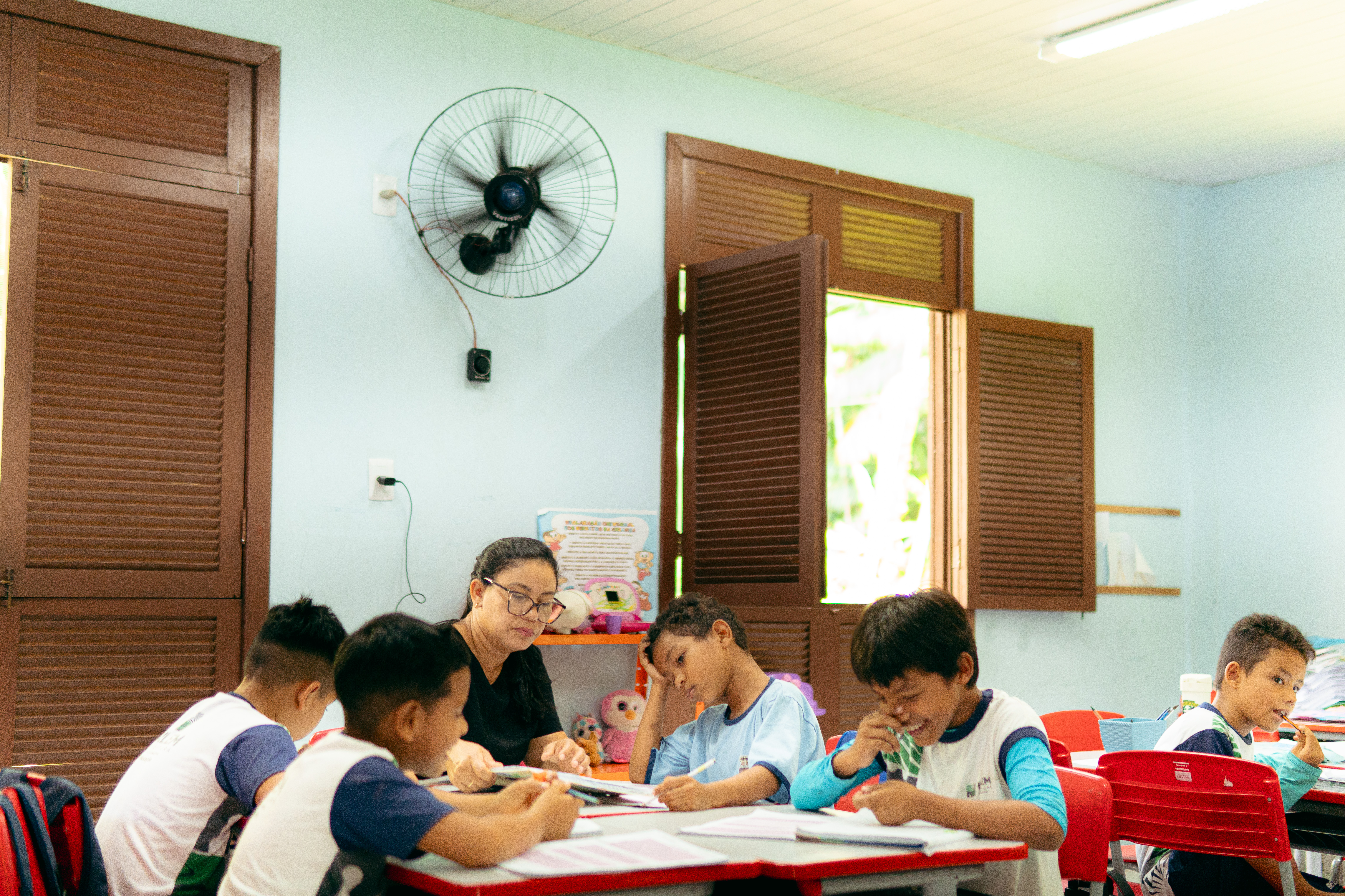 “A gente vive como se fosse numa pequena panela de pressão. É como se a água estivesse o tempo inteiro evaporando, esse calor constante, esse clima quente e úmido”. Esse relato é da professora Janaína Fernandes, que leciona há oito anos na educação infantil da Escola Municipal Milton Monte, na Ilha do Combu. Ela resume a experiência cotidiana de estudantes e educadores em Belém, no Pará, em unidades de ensino que ainda não contam com climatização adequada.