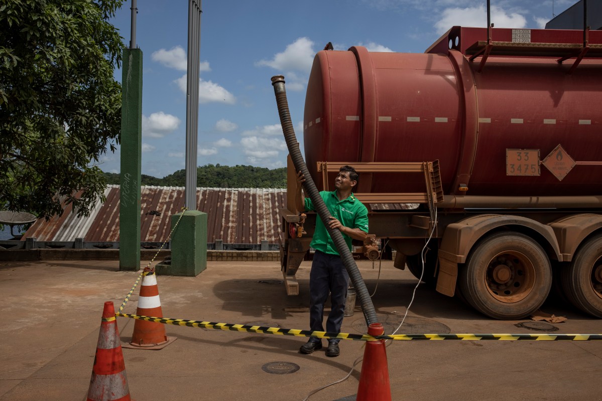 Imagem de abertura: Um funcionário de um posto de gasolina da Petrobras abastece a bomba com diesel às margens do rio Oiapoque, no Amapá. Foto: Victor Moriyama/InfoAmazonia