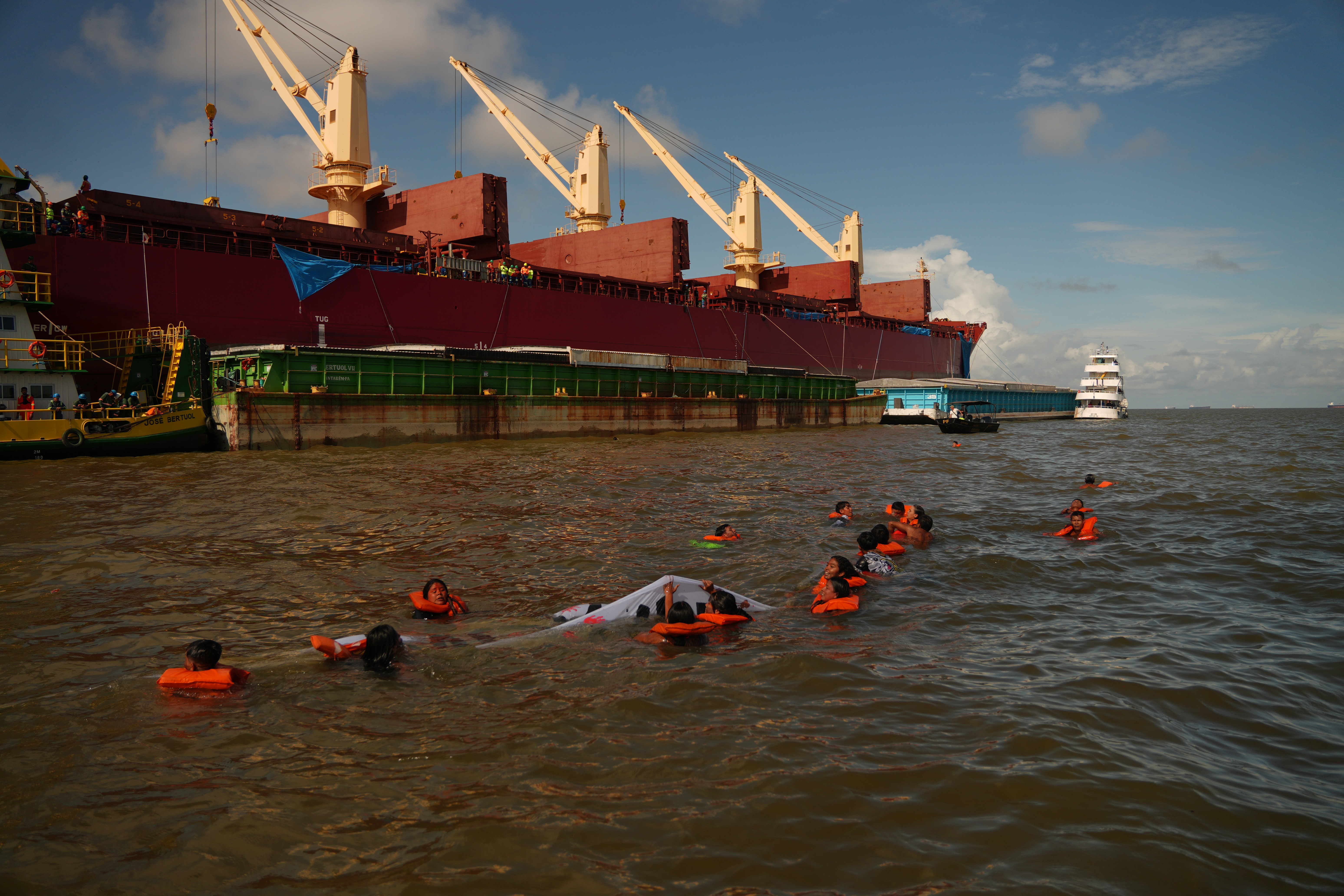Imagem de abertura: Ocupação ocorreu nesta quinta-feira, 19 de fevereiro, em balsa de grãos da Cargill. Foto: Coletivo Apoena Audiovisual/Divulgação
