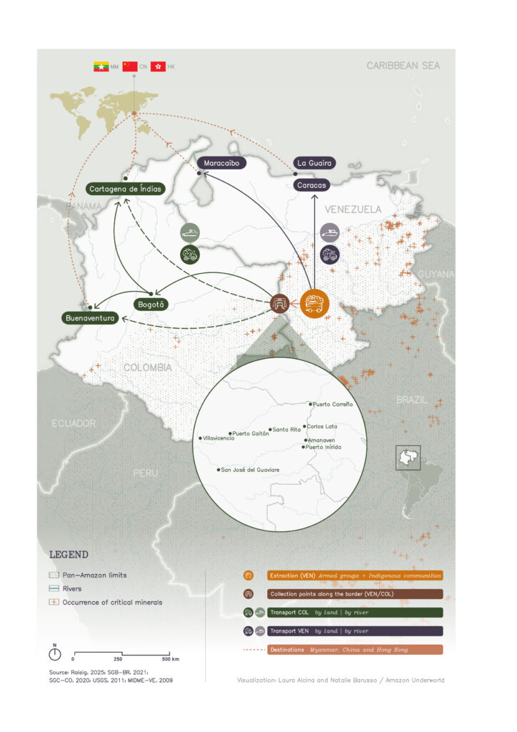 A complex network of actors has emerged around the critical minerals of the Amazon. Some operate along contested river corridors, trading with guerrilla groups and corrupt security forces. Others, under a façade of legality, move massive quantities of material through large port cities connected to international trade routes. Together, these operations endanger the environment and the sovereignty of entire nations.