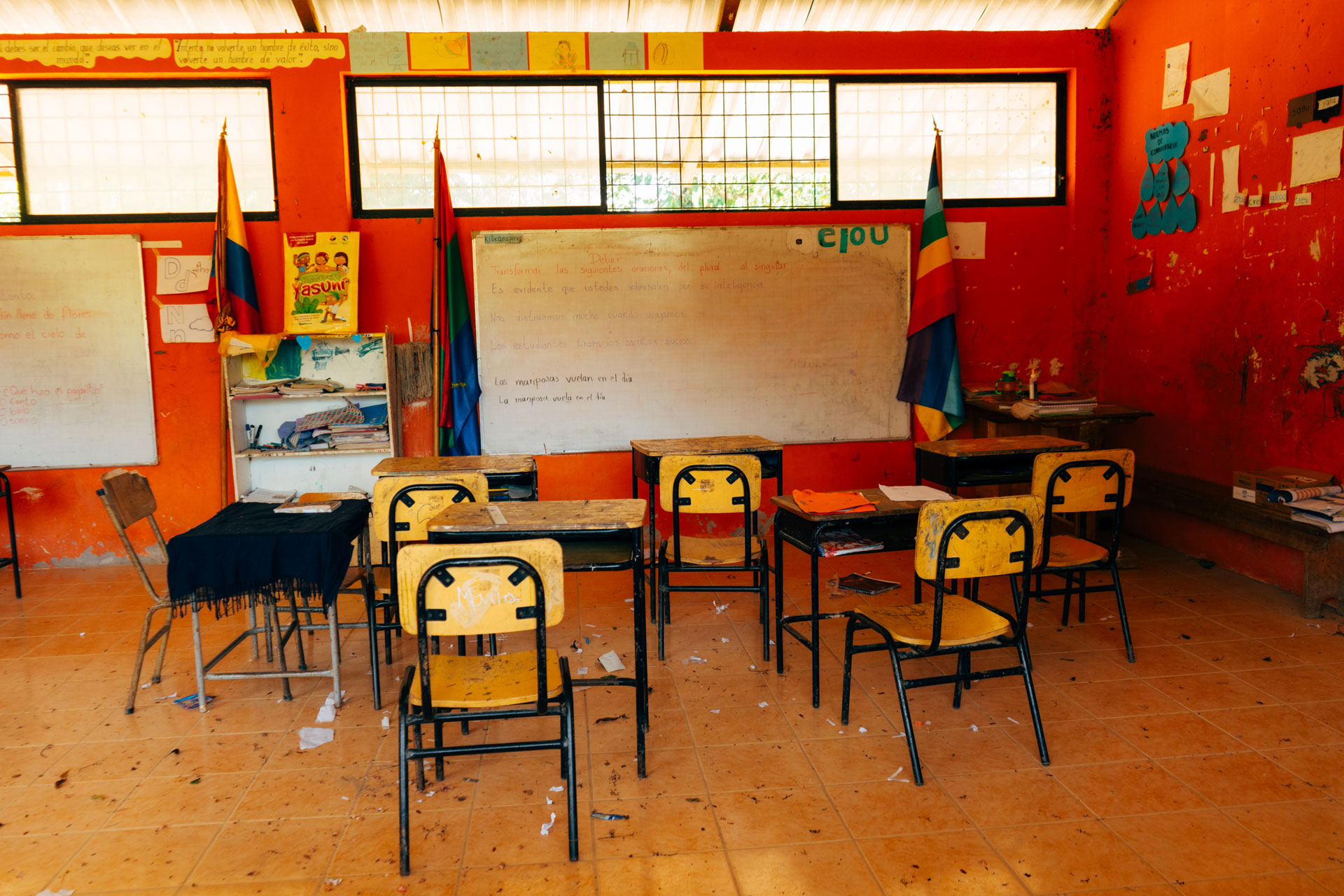 Sentado en una banca del centro comunal de Piwiri, Vargas dice que los padres de familia deben pagar cinco dólares mensuales al colegio. Cuando las pensiones se acumulan porque no tienen ingresos con qué pagar, el colegio se cierra. Eso, según Vargas, ya pasó en Piwiri en 2024.